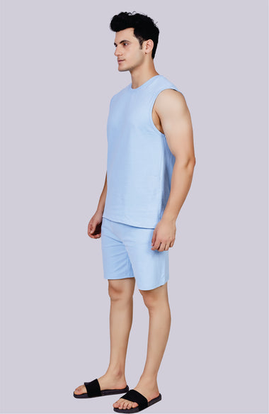 Men's Sleeveless Co-Ord Set (Aqua Blue)