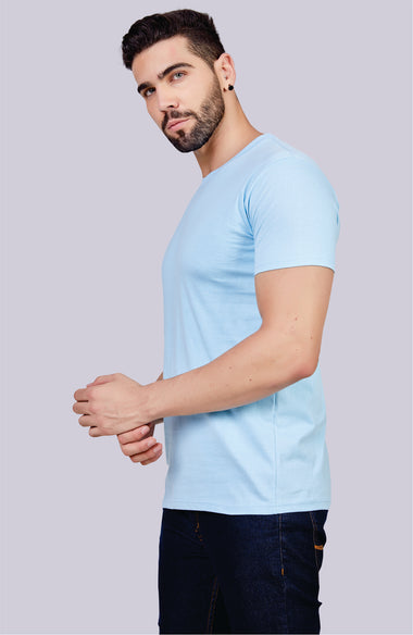 Men's Solid Crew Neck T-Shirt (Aqua Blue)